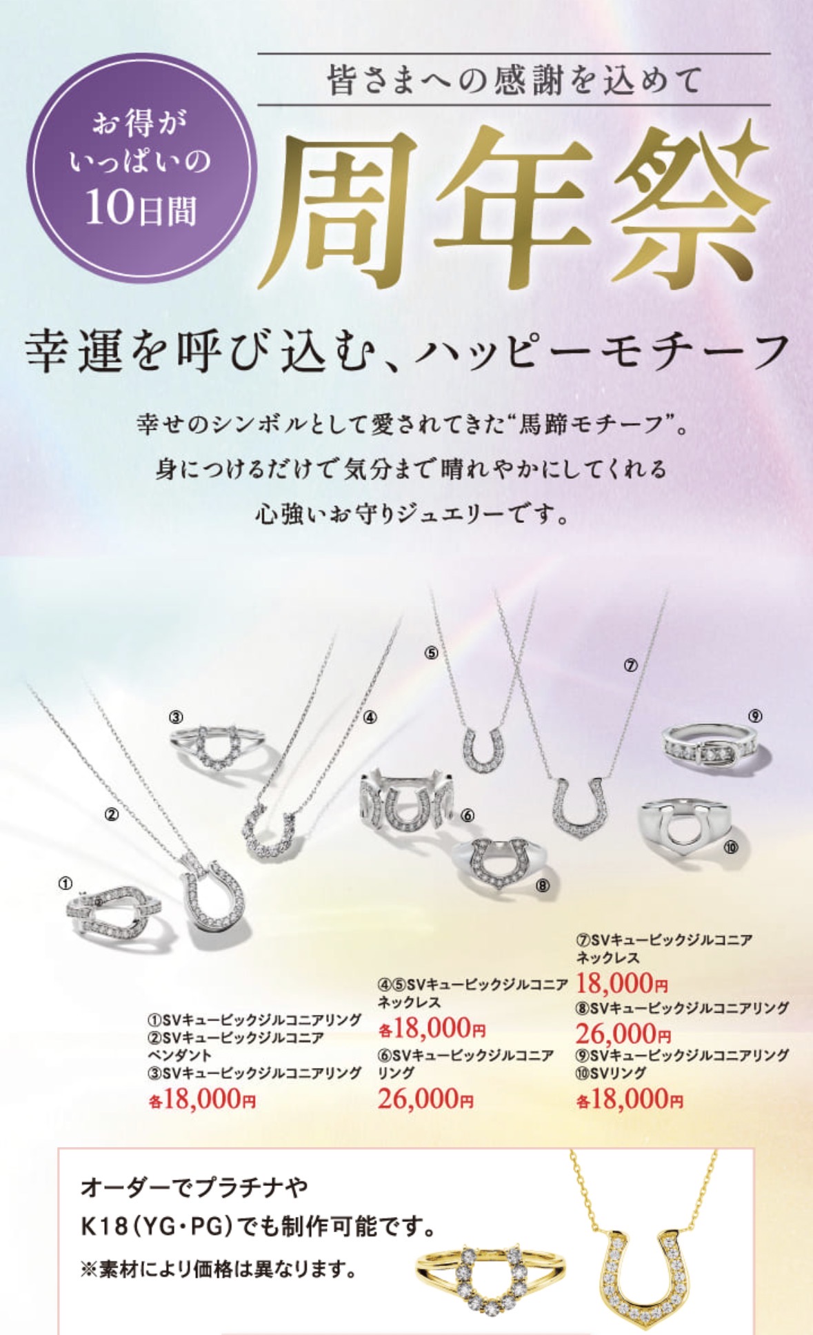 NEW 更新日:2026.04.03 ミルフローラ 06-6649-0303 〜周年祭〜 実施日時 4月3日(金)ー4月12日(日) ミルフローラでは「周年祭」を開催中♪ 期間限定特別価格となっております♪ ご自身へのご褒美、大切な人へのプレゼントなどにいかがでしょうか?? お手持ちジュエリーのクリーニング無料キャンペーンも実施中です♪ 是非ぜひお立ち寄り下さい♪ 関連キーワード #記念日 #プレゼント #期間限定 #コーデ #お出かけ X この店舗のショップニュース 〜地金高騰中〜 〜ブルームブライダル〜 〜サムシングブルー〜 〜ティス〜 〜リボン〜 〜セカンドマリッジ〜 〜ディズニープリンセス〜 〜アスタイーリス〜 〜シネマストーリー〜 〜ジュエリーメンテナンス〜