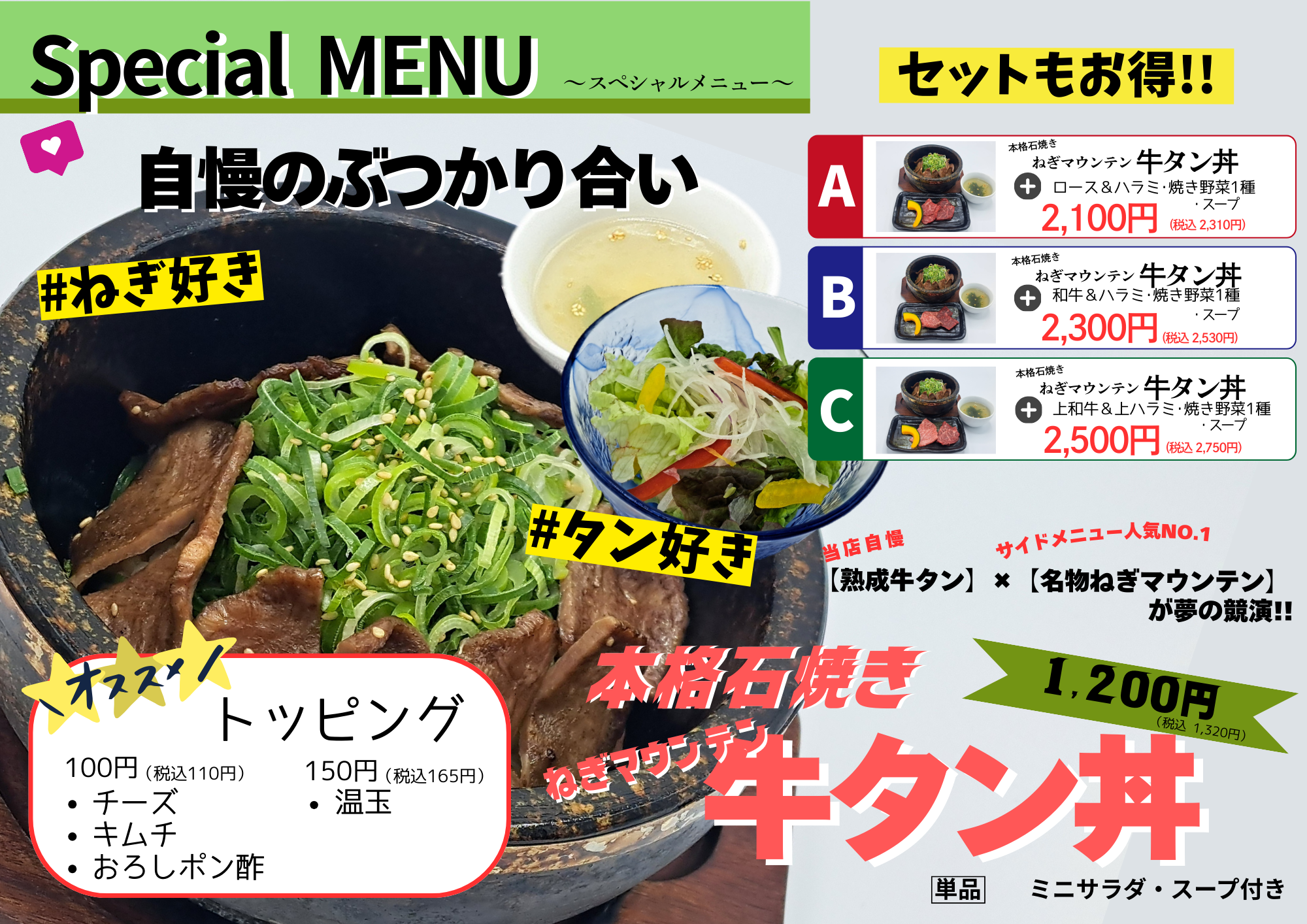 【復刻メニュー】 本格石焼き ねぎマウンテン熟成牛たん丼