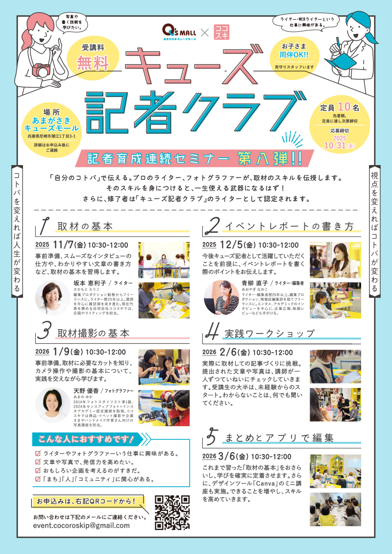 キューズ記者クラブによるあまがさきキューズモールのHOTな話題や情報を随時お届けしています!