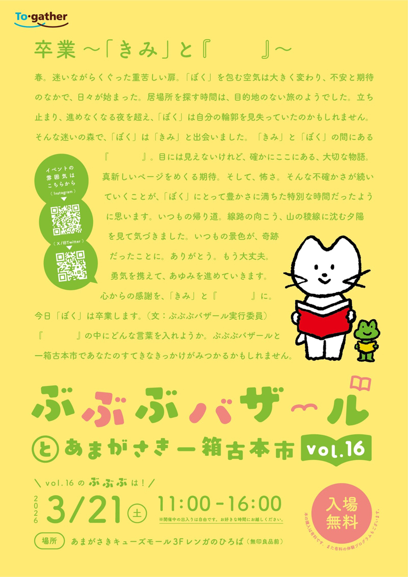 今回は「卒業」をテーマに古本市を開催します!本好きの方もそうでないかたもふらっとお立ち寄りいただけたら、うれしい出会いがあるかも...。お待ちしております♪