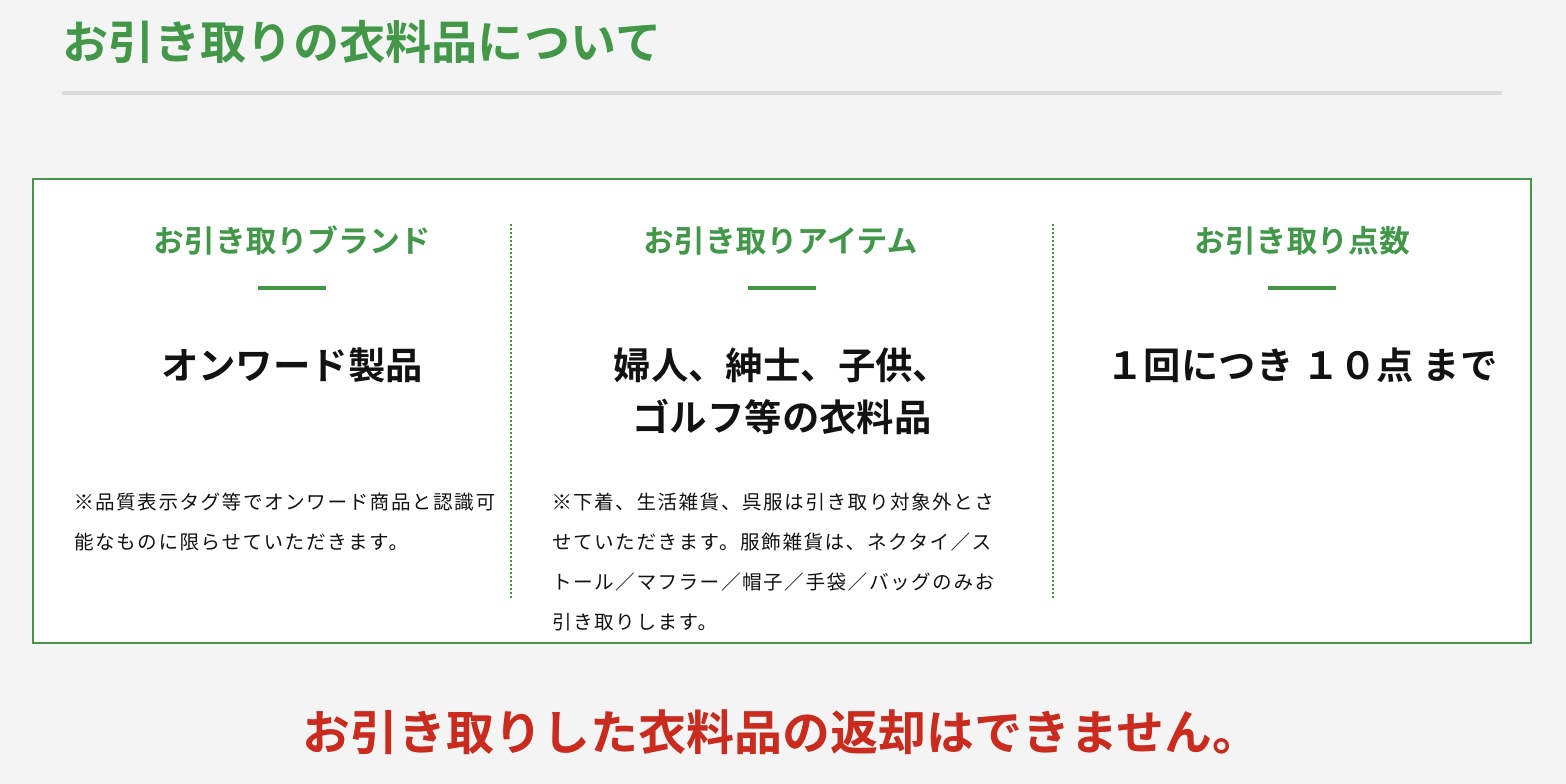 ①お持ちいただいたオンワードの衣料品 1 点につき
