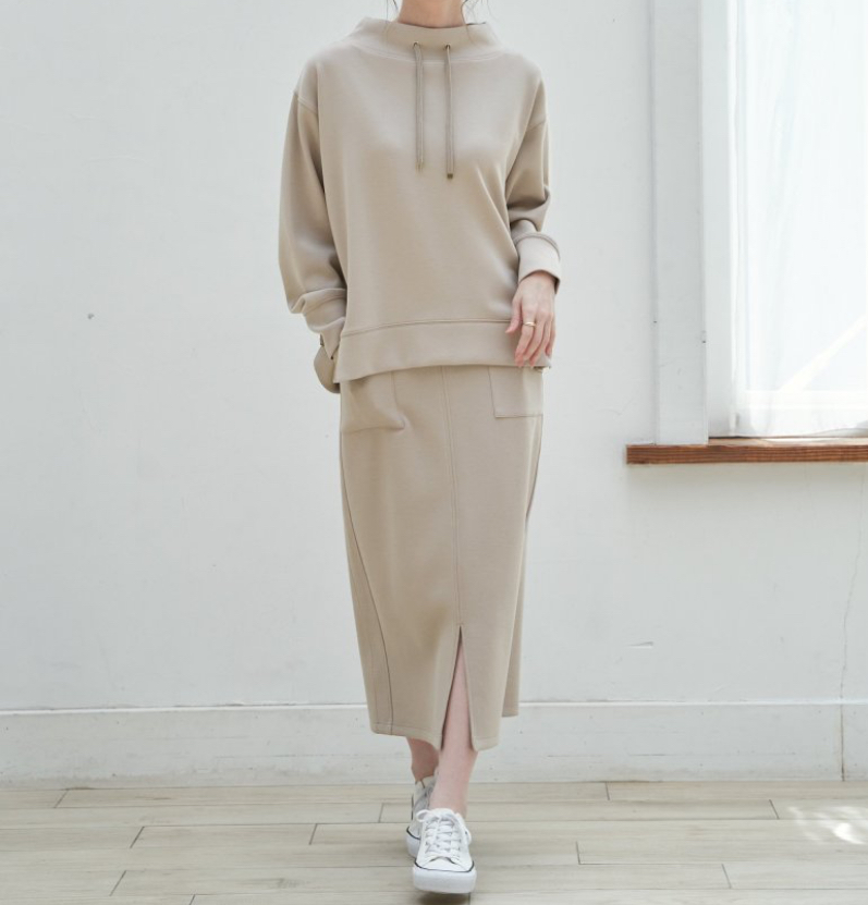 身体のラインを拾いすぎず、すっきりとしたシルエットが魅力。