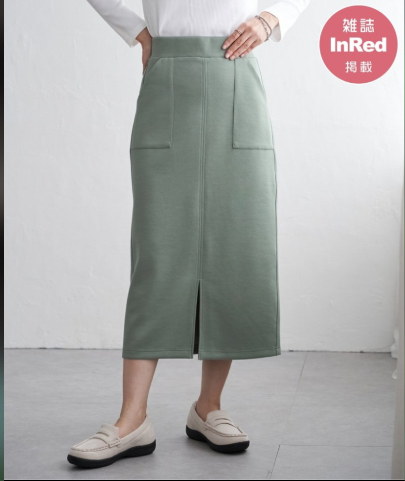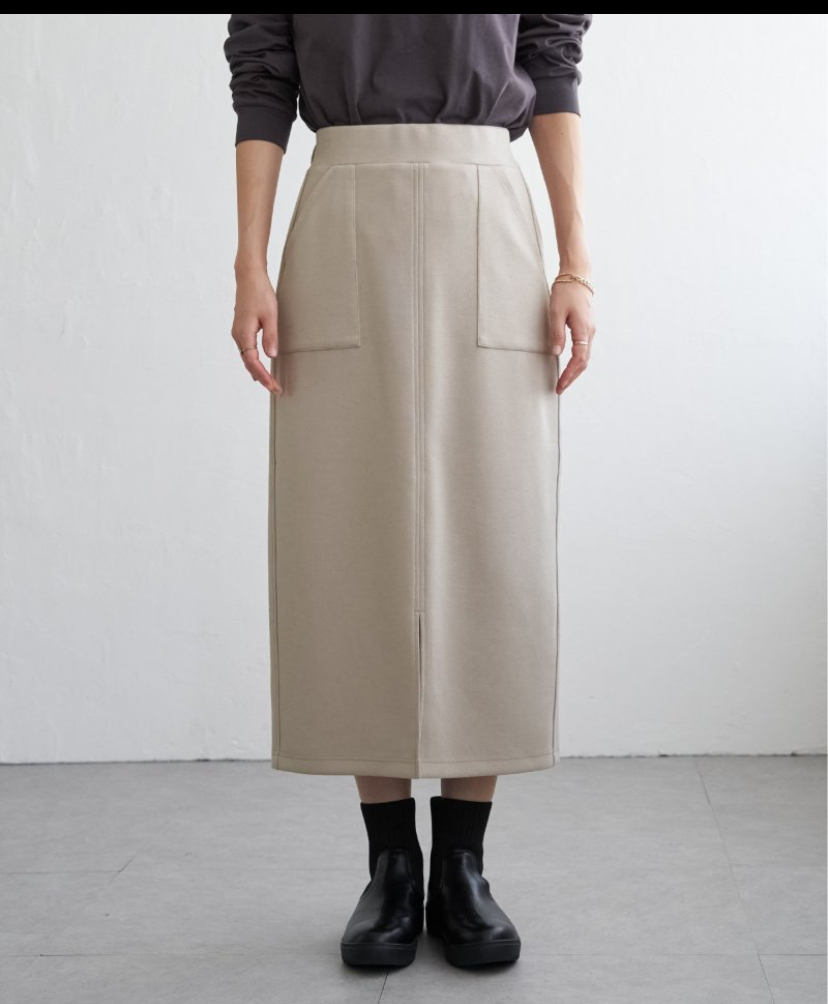 腰回りのアウトポケットがキレイめカジュアルなタイトスカート。