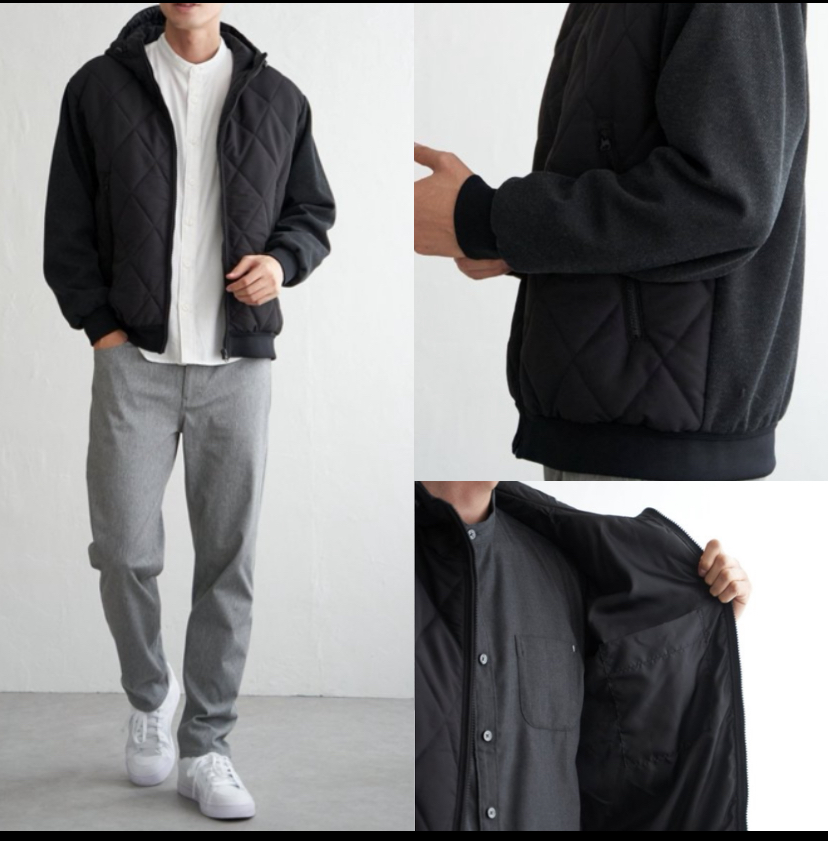 ダイヤキルトの身頃×ジャージの異素材使い。