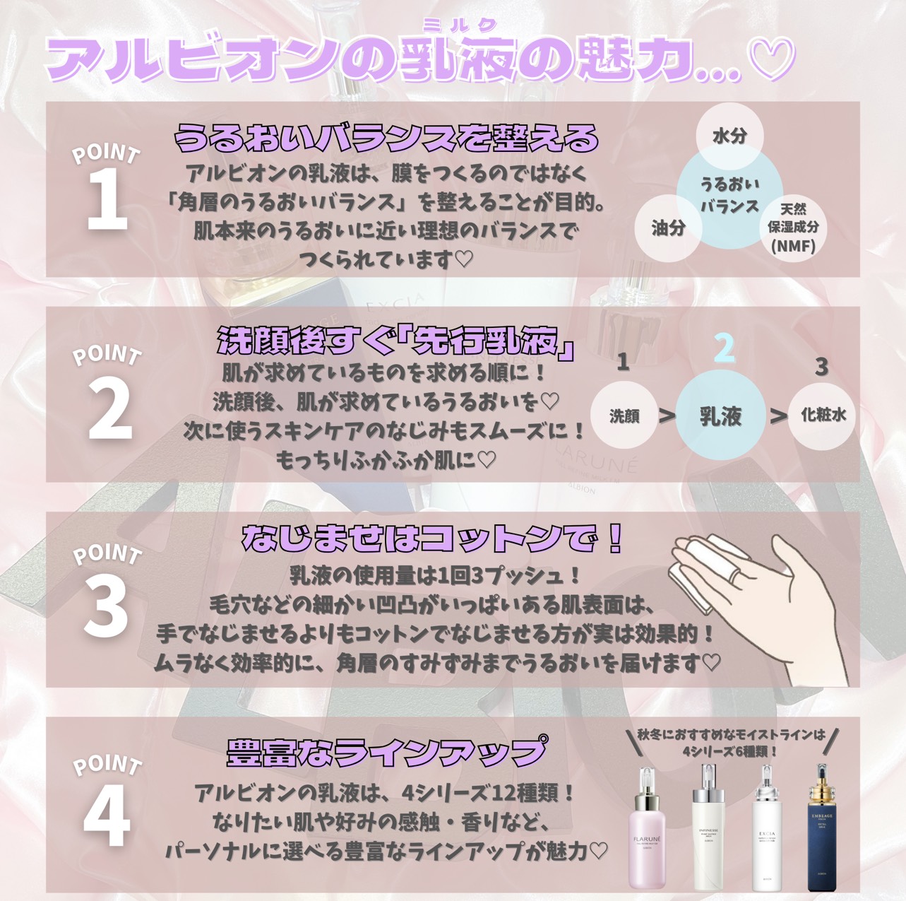ALBIONの乳液は肌表面にある角層の『うるおいバランス』を整えてくれるアイテム!