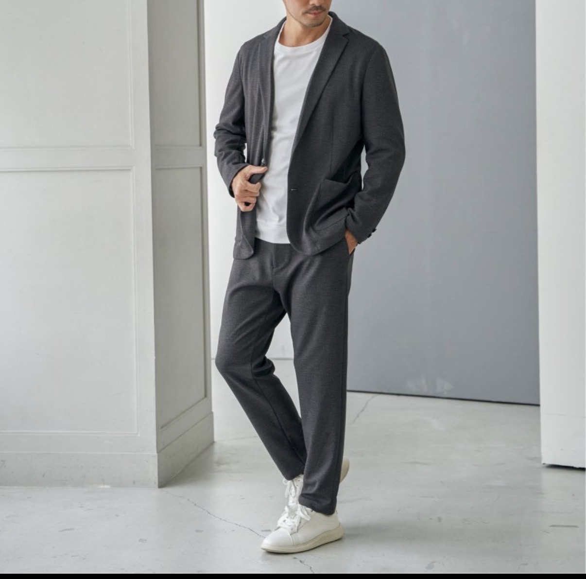 絶妙なデニム見え表現に加え、ベース素材に凹凸素材を使用することで、ジャケットセットアップに適した価値観のある見た目を表現。