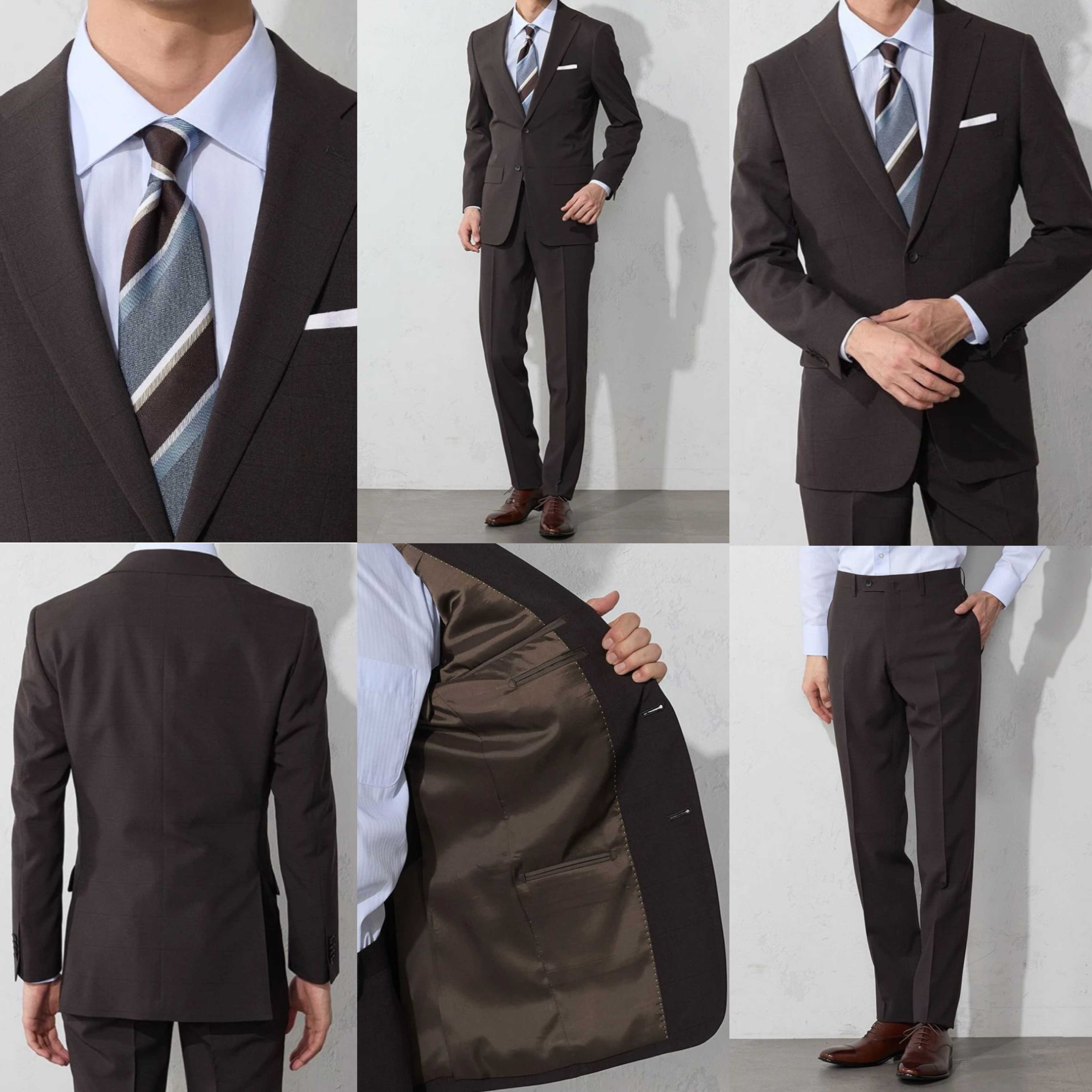 【上下洗える!スーツ】ウィンドペン ブラウン