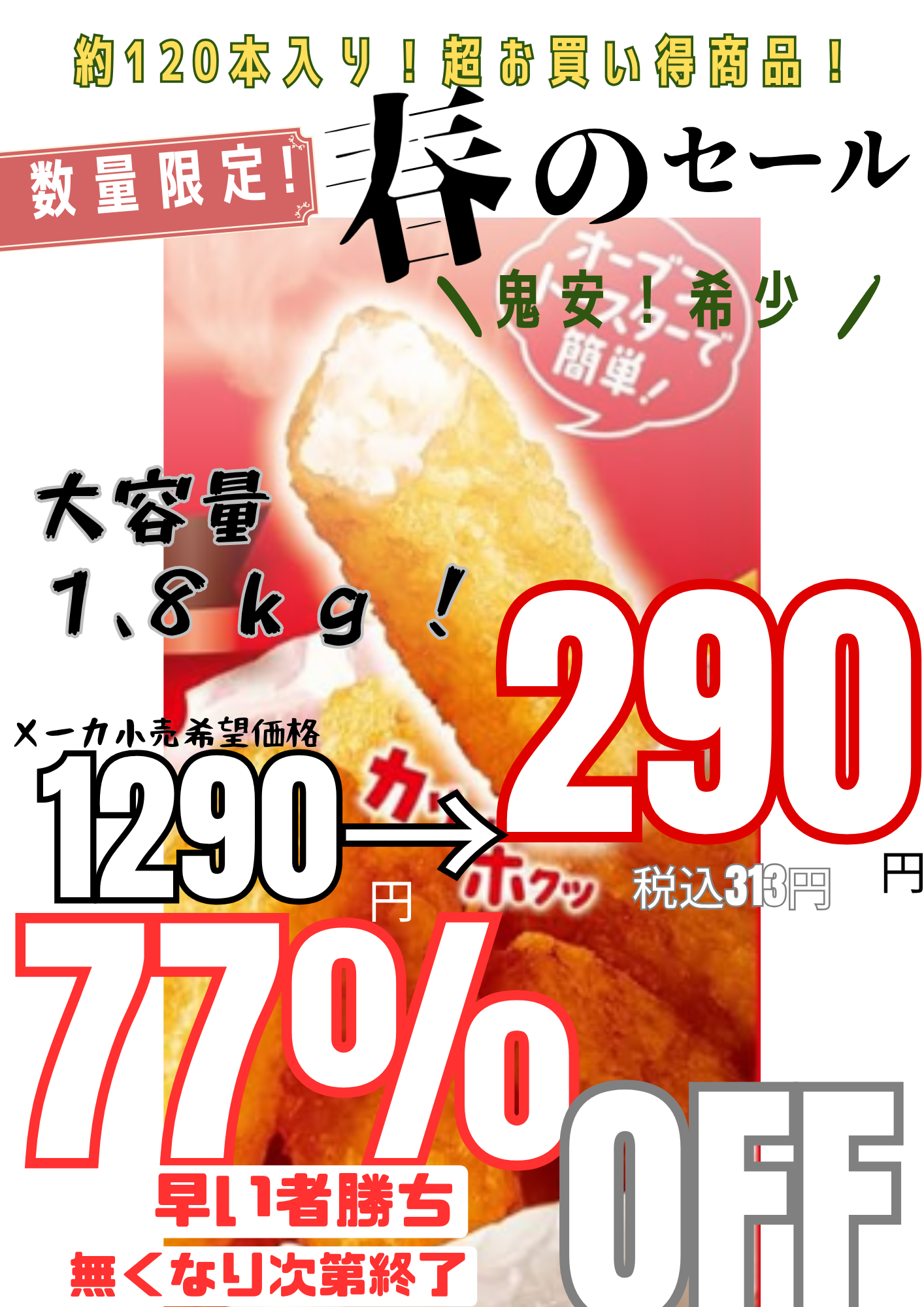 NEW 更新日:2026.04.07 ももひこや 06-6480-8010 驚安!大容量!業務用!ハッシュポテト★ 関連キーワード #セール X この店舗のショップニュース 新商品!4/8~ START!