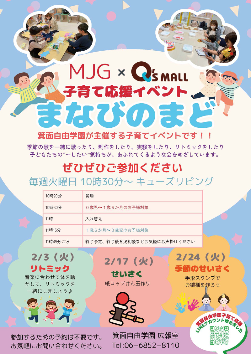 キューズ子育てつどいのひろばイベント情報 |みのおママの学校
