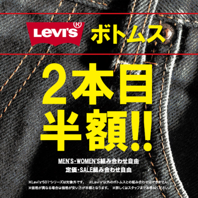 リーバイスのボトムスが2本目半額!年末年始の大チャンス★