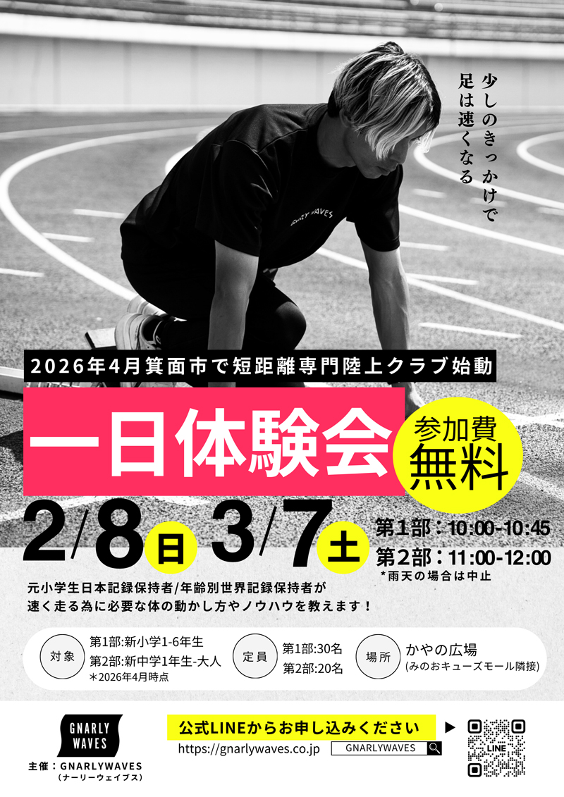 短距離専門陸上クラブ『GNARLYWAVES SPRINT(ナーリーウェイブス スプリント)』の無料体験イベントを開催いたします。
