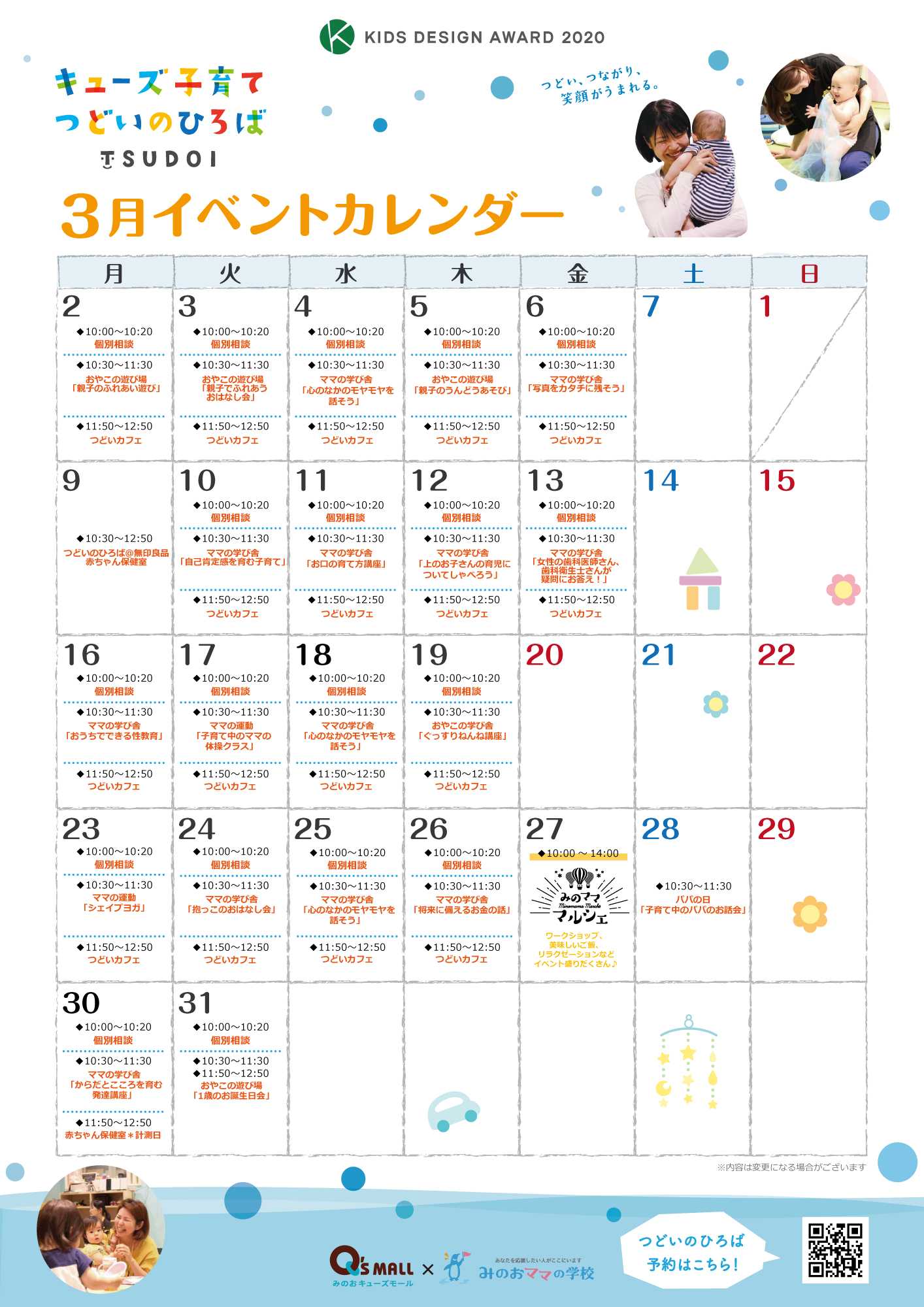 【3月後半】キューズ子育てつどいのひろばイベント情報 |みのおママの学校