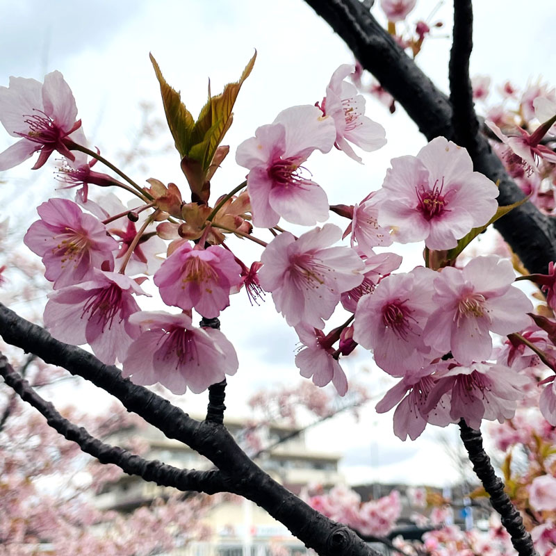 今日は曇り空で少し肌寒い一日ですが、桜は変わらずやさしく咲き、春の訪れを感じさせてくれています。