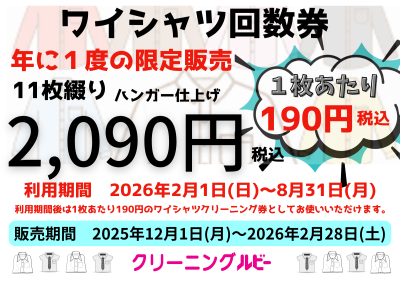 ワイシャツ回数券販売中!